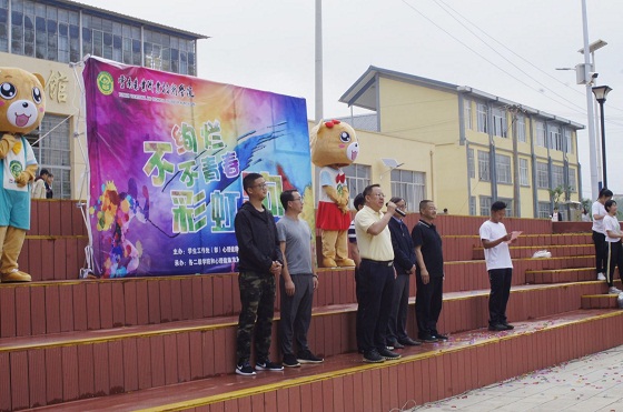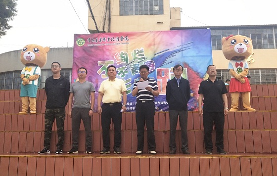 盛夏五月,由学院心理健康教育与咨询中心举办的“2019年大学生心理健康教育月系列活动之阳光下的狂奔-百人彩虹跑”活动于5月23日上午8:00在农耕文化广场开幕。本次活动紧紧围绕“新时代 心阳光 心成长”的主题开展。学院党委书记崔金赋、院长文俊、纪委书记冯志宏、党委委员夏体韬受邀出席此次活动。此次活动共由6支参赛队伍,每支参赛队伍由一名老师和十六名学生组成。